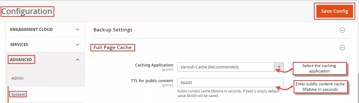 Steps to configure Magento 2 Full Page Cache: