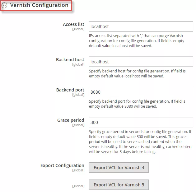 - In case you chose the Varnish option in Caching Application, configure the Varnish Configuration option as below: